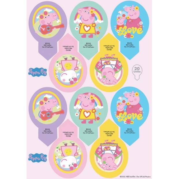 Předřezená oplatka s motivem prasátka Peppa. Rychlý a snadný způsob, jak ozdobit vaše cucpakes. Rozměr: šířka 40 mm x výška 62 mm včetně představce.