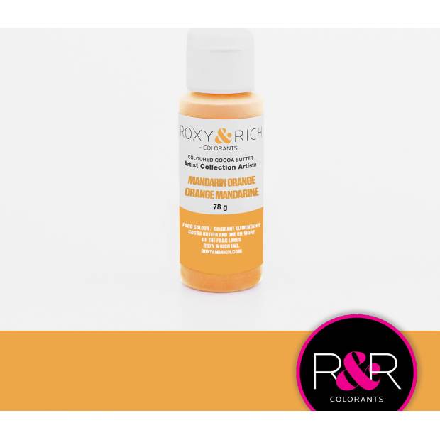 Krásná barva kakaového másla od Roxy & Rich, která mj. lze použít na čokolády, dorty a zákusky. Barva má matný povrch, v sérii více barev. Bezlepkový a bez laktózový produkt.Vhodné pro vegetariány a vegany. Tato bílá čokoládová barva je vyrobena z vápníku, aby se zabránilo použití E171. Protože k dosažení stejné bílé barvy jako při použití oxidu titaničitého (E171) je třeba použít více vápníku, znamená to, že barva je viskóznější. To znamená, že při použití v airbrush se barva musí více zahřát - zde je také velmi důležité, aby se airbrush pistole při používání dobře zahřála, protože jinak ve špičce velmi rychle tuhne. Barva se rozpustí přímo v nádobě v mikrovlnné troubě nebo ve vodní lázni a poté je tekutá - velmi snadné použití. Přebytečná barva v lahvičce ztuhne a lze ji použít znovu jindy. Zahřívejte vždy jen 10 sekund, protřepejte a znovu 10 sekund zahřívejte – pozor, ať se nepřipálí. Barva kakaového másla by se neměla temperovat. Lze nanášet štětcem, airbrushem nebo prsty. Opravdu produkt, který podporuje kreativitu!