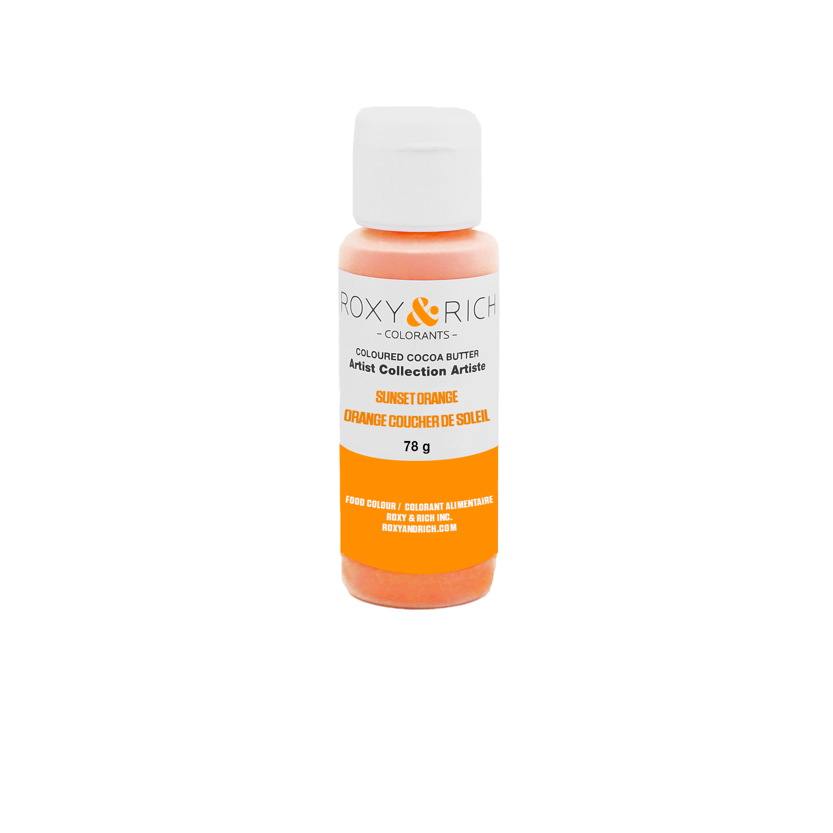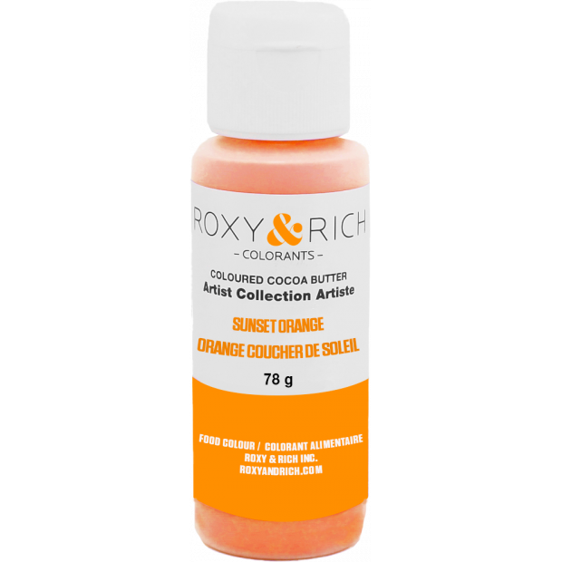 Krásná barva kakaového másla od Roxy & Rich, která mj. lze použít na čokolády, dorty a zákusky. Barva má matný povrch, v sérii více barev. Bezlepkový a bez laktózový produkt. Vhodné pro vegetariány a vegany. Barva se rozpustí přímo v nádobě v mikrovlnné troubě nebo ve vodní lázni a poté je tekutá - velmi snadné použití. Přebytečná barva v lahvičce ztuhne a lze ji použít znovu jindy. Zahřívejte vždy jen 10 sekund, protřepejte a znovu 10 sekund zahřívejte – pozor, ať se nepřipálí. Barva kakaového másla by se neměla temperovat. Lze nanášet štětcem, airbrushem nebo prsty. Opravdu produkt, který podporuje kreativitu. V R&R využívají nejnovější technologické poznatky v potravinářském barvení k vytvoření jedinečných a mnohem zářivějších barev. Stručně řečeno, každá částice je obarvena a poté rozdrcena na atomy. Tímto způsobem je v každém gramu mnohem více barvy. Vše samozřejmě schváleno pro potravinářské použití!