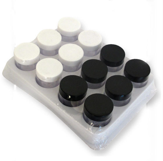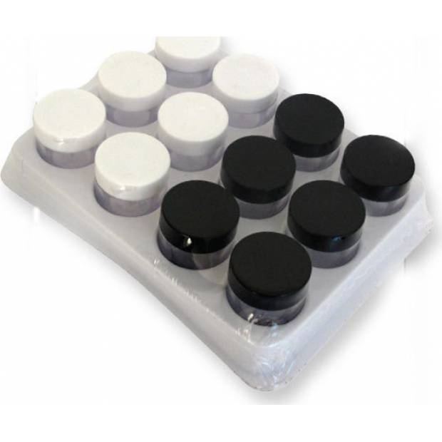 Sada 12ti míchacích kelímků je ideální pro skladování a míchání potravinářských barev. Kelímky jsou velmi užitečné při vytváření požadovaných barev. Balení obsahuje 6 černých a 6 bílých kelímků. Přibližné rozměry: výška: 3cm, průměr 3cm.
