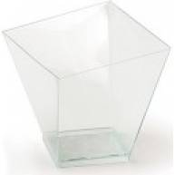 Mini kelímek se šikmým čtvercovým dnem vyrobený z plastu se skvěle hodí na dezerty, omáčky a dresinky. Poháry představují nové možnosti vystavování a prodeje produktů. Vytvořeno tak, aby potěšilo oko svým obsahem, který se může stát malým dílem kulinářského umění.