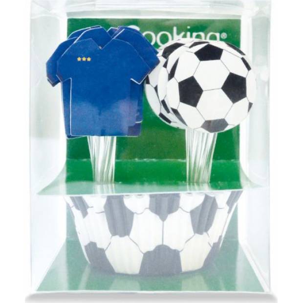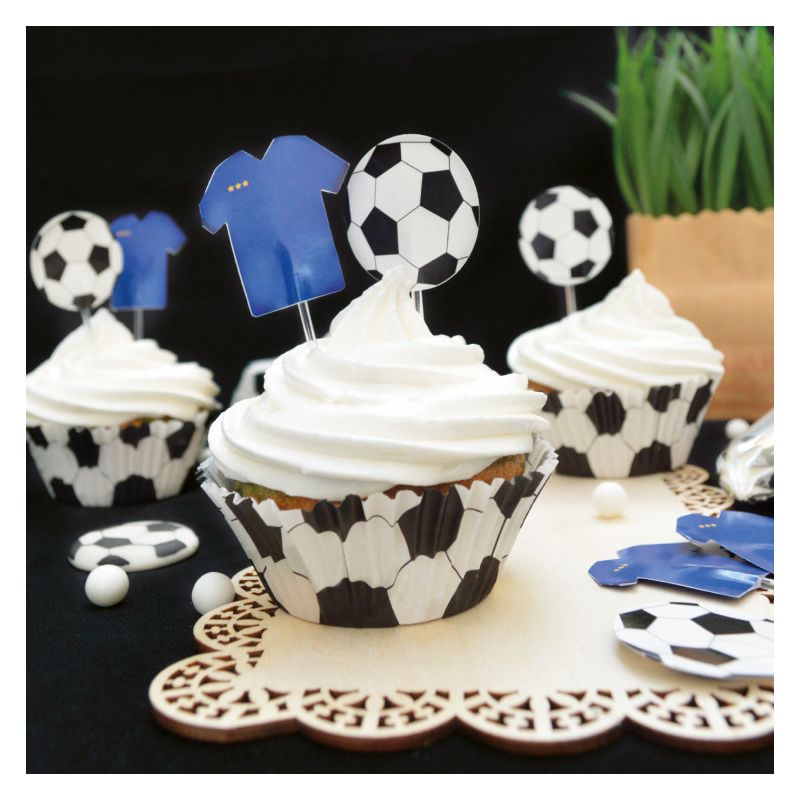 Použijte těchto 24 košíčků na košíčky a 24 dortů s motivem fotbalu k ozdobení vašich koláčků nebo muffinů během okamžiku. Ideální pro večírky s fotbalovou tématikou. Velikost: Košíčky: 5,2 x 7,5 x 3,4 cm, Kulička na dorty: 8,4 x 3,4 cm, Tričko: 8,7 x 3,6 cm.