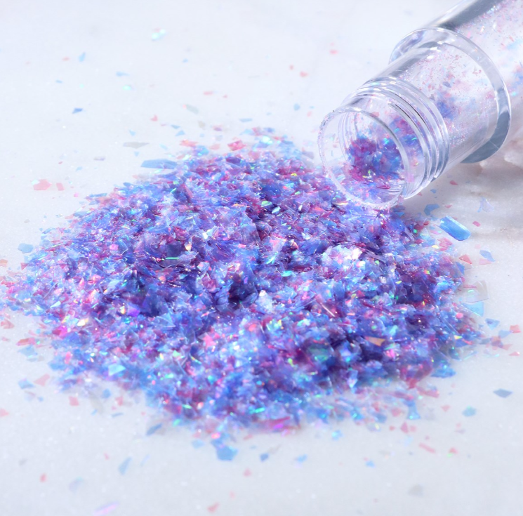 100% jedlé, veganské duhové třpytivé vločky vyrobené z rostlinných barviv. S efektem drahokamu. Používejte na suché povrchy, aby se zabránilo rozpuštění. Třpytivé vločky jsou ideální pro dodání oslnivého nádechu a zajistí, že vaše dezerty budou zářit jasně."