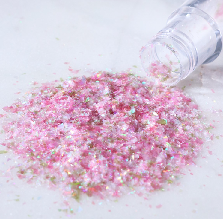 100% jedlé, veganské duhové třpytivé vločky vyrobené z rostlinných barviv. S efektem drahokamu. Používejte na suché povrchy, aby se zabránilo rozpuštění. Třpytivé vločky jsou ideální pro dodání oslnivého nádechu a zajistí, že vaše dezerty budou zářit jasně."