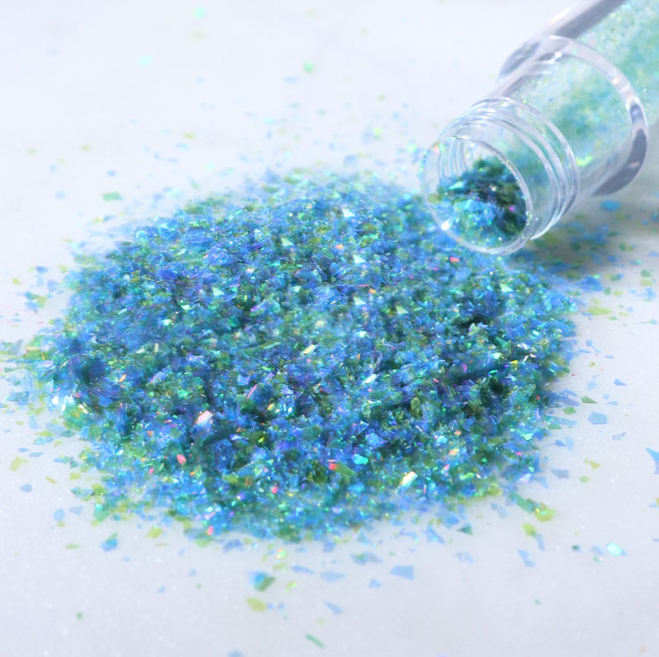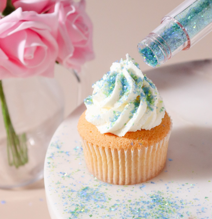 100% jedlé, veganské duhové třpytivé vločky vyrobené z rostlinných barviv. S efektem drahokamu. Používejte na suché povrchy, aby se zabránilo rozpuštění. Třpytivé vločky jsou ideální pro dodání oslnivého nádechu a zajistí, že vaše dezerty budou zářit jasně.
