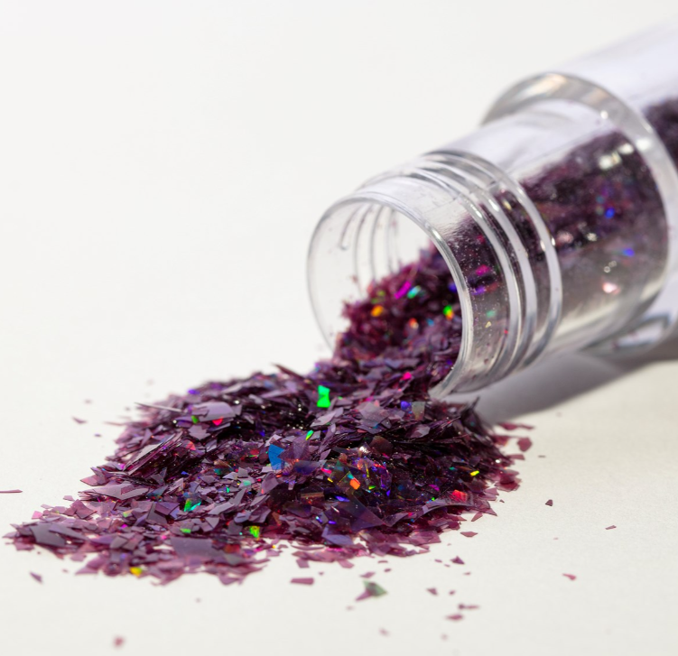 100% jedlé, veganské duhové třpytivé vločky vyrobené z rostlinných barviv. S efektem drahokamu. Používejte na suché povrchy, aby se zabránilo rozpuštění. Třpytivé vločky jsou ideální pro dodání oslnivého nádechu a zajistí, že vaše dezerty budou zářit jasně."