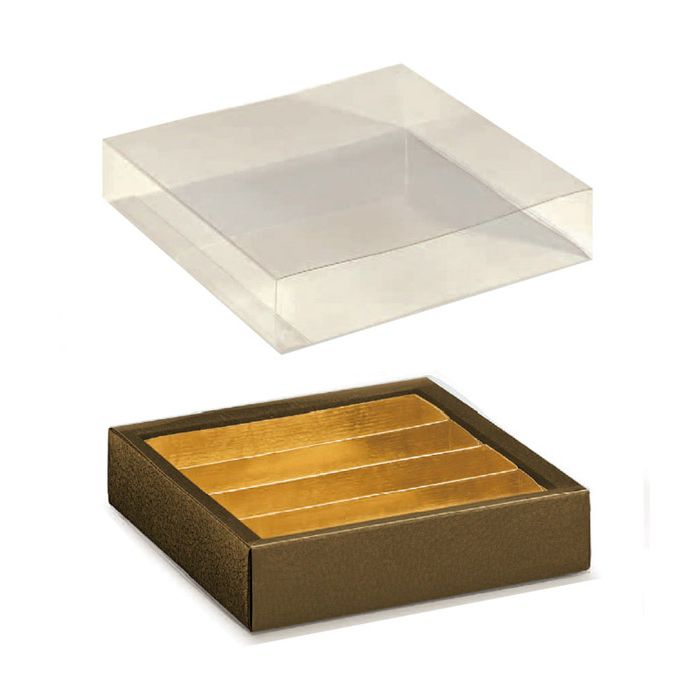 Krabička na pralinky s průhledem + mřížka. Rozměry 145 x 145 mm.