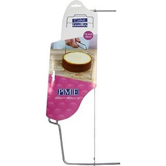 Kráječ dortů PME se zoubkovanou čepelí je základním nástrojem pro všechny dekorátory dortů. Tento kráječ dortů přesně vyrovnává a rozděluje koláče nebo sušenky na rovnoměrné vrstvy. Kráječ dortu usnadňuje vytváření vrstvených koláčů. Velikost cca. 46 cm.