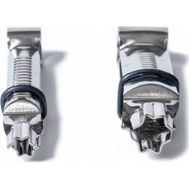 Krimpovací kleště na dorty jsou perfektní pomůckou pro zdobení potahovací hmoty. Seštípnutím hmoty na ní otisknete hvězdičku. Aby byly všechny hvězdičky pokaždé stejně velké, jsou kleště opatřené zajišťovací gumičkou. Výborně se tak hodí na zdobení obvodu potaženého dortu. Šířka hvězdiček je 12 a 17 mm. Kleště jsou vyrobené z nerezu. Balení obsahuje dvoje kleště.