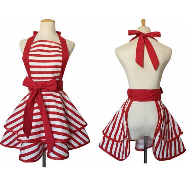 Kuchyňská zástěra může být hezká a stylová a také praktická jako tato zástěra s mašlí a volány. Věříme, že funkční a praktické předměty mohou být také módní a krásné. Střih zástěry doplňuje pásek a díky propracovanému střihu je velmi praktická.