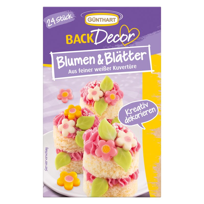 Květy a listy z bílé čokolády Günthart jsou dokonalým dekoračním prvkem pro dorty, zákusky, cupcaky či slavnostní dezerty. Sada obsahuje 24 precizně tvarovaných ozdob, které kombinují estetickou krásu s lahodnou chutí kvalitní bílé čokolády. Díky jemné textuře a syté barvě působí tyto dekorace velmi elegantně a snadno z vašich sladkostí vykouzlí profesionálně vypadající výtvory.