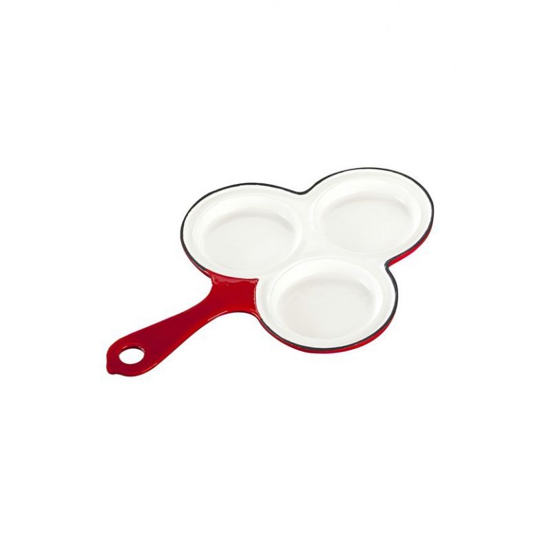 Litinový smaltovaný lívanečník české výroby Gourmetina. Barva červená.
