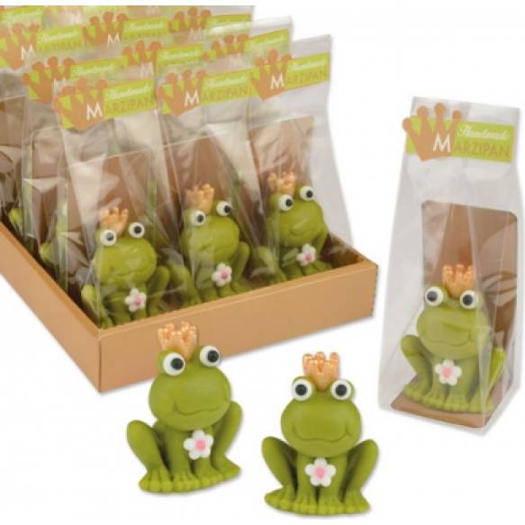 Jedlá dekorace v podobě žáby je skvělým dárkem pro děti i dospělé, kteří mají rádi marcipán. Každá marcipanova figurka je zabalená do celofánového sáčku. Rozměry jsou 42 x 30 x 45 mm, se sáčkem: 40 x 37 x 110 mm (18 g).