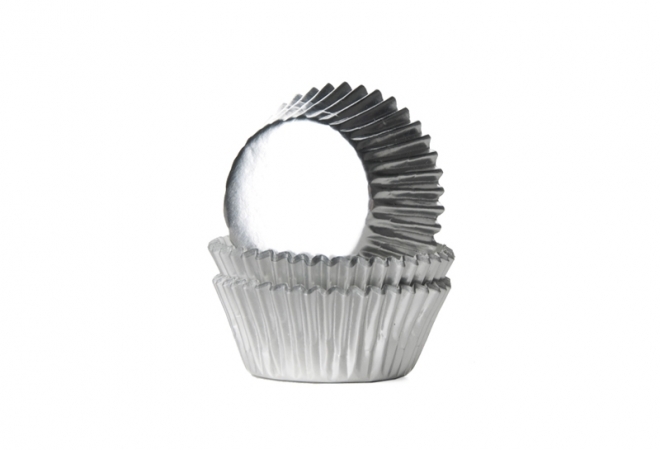 Mini papírové košíčky na muffiny potažené stříbrnou folií vhodné na pečení.