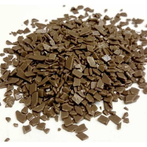 Čokoládová dekorace určená pro závěrečné zdobení dortů, zákusků a cukroví. Šupiny určené pro cukrářskou výrobu, k posypům a ke zdobení dortů a dalších cukrářských a zmrzlinářských výrobků. Velikost vloček cca  0,3 - 1 cm. Složení: cukr, plně ztužené rostlinné tuky (palmojádrový), sušené odstředěné mléko (10%), kakaový prášek se sníženým obsahem tuku (4%), laktóza, emulgátor E322 sójový lecitin, glukózový sirup, aroma (vanilin). Bezlepkové. Skladujte na chladném a suchém místě (do 20°C).