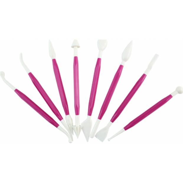 Základní modelářská sada, nepostradatelná pro každého amatérského i profesionálního cukráře. Sada obsahuje nástroje pro modelování květin, listů, postav lidí a zvířat a rýhování s rovným, vlnitým a pruhovaným vzorem pro řezání a ražení vzorů v cukrové hmotě. Unikátní a multifunkční nástroje vyvinuté pro 3D modelování a povrchové úpravy cukrových těst. Sada obsahuje 8 různých vzorů.