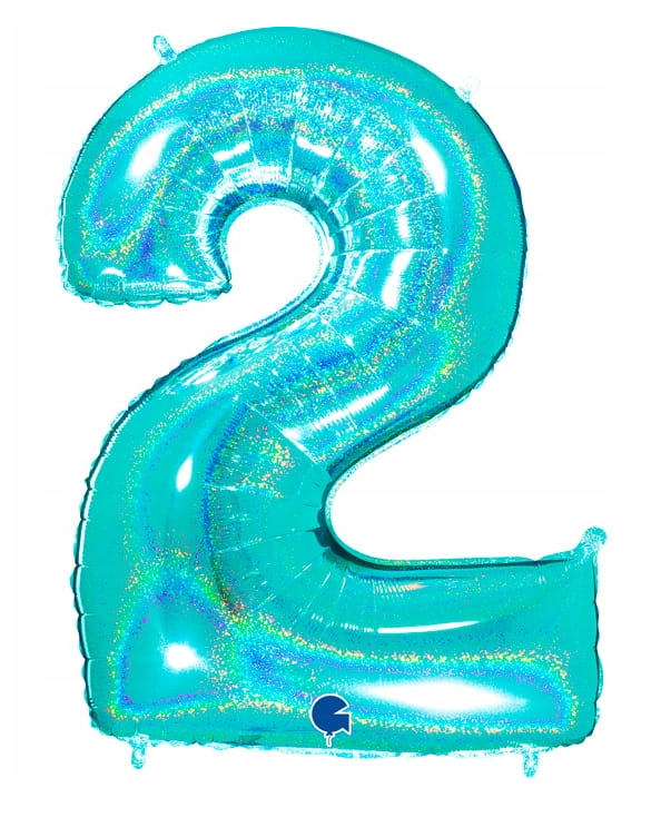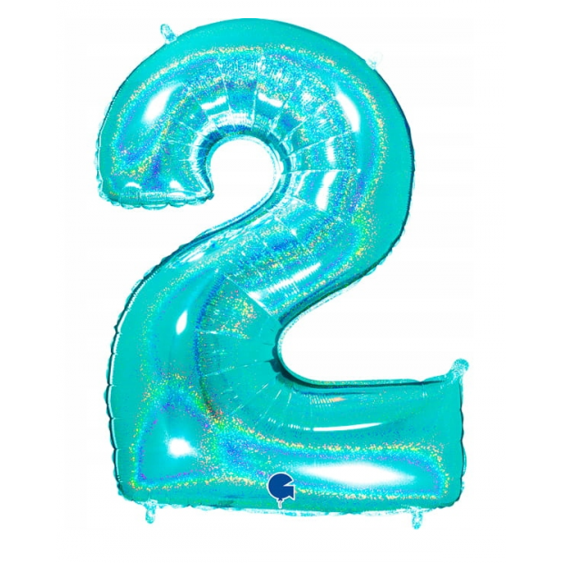 Nafukovací balónek číslo 2 tyrkys holografický 102 cm