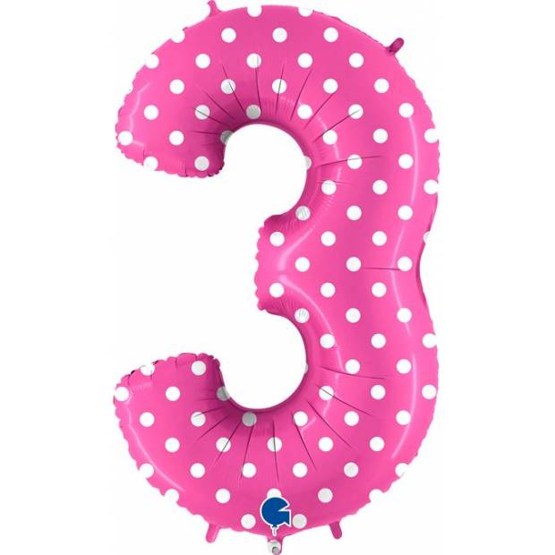 Nafukovací balónek číslo 3 růžový s puntíky 102 cm