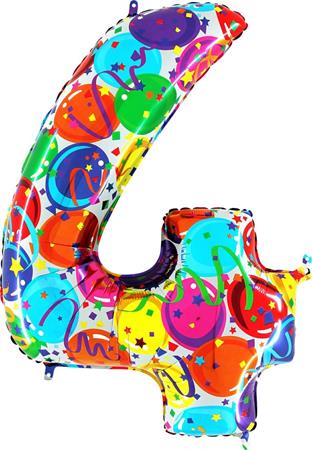 Barevný balónek číslo 4. Balónek je vyrobený z pevné fólie. Po nafouknutí vzduchem vydrží naplněný i několik týdnů, pokud si balónek necháte naplnit héliem vydrží pevně nafouklý a bude létat až 4 dny. K nafouknutí balónku používejte vždy speciální pumpičky k tomuto určené, pokud použijete kompresor s velkým tlakem, může balónek prasknout. Nevhodné pro děti do 3 let. Hélium nevdechujte.