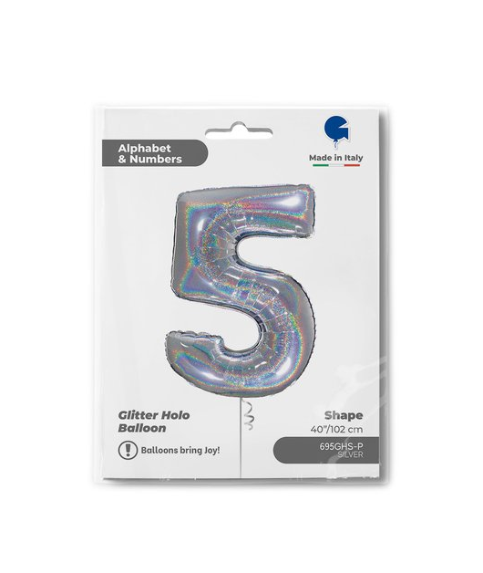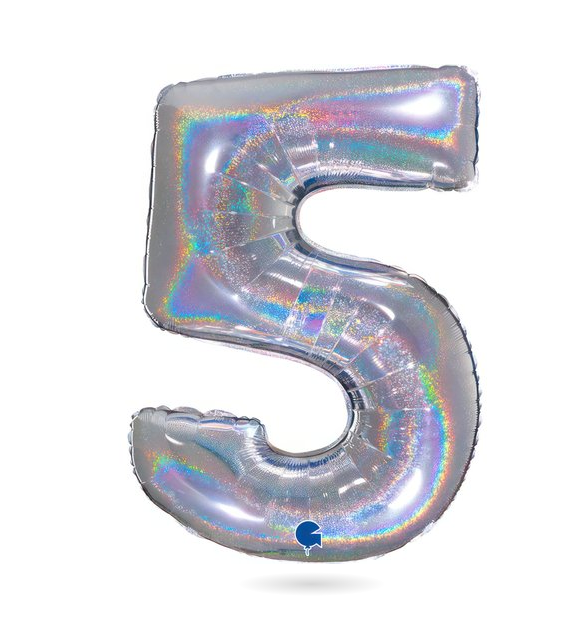 Fóliový balónek číslo 5 modrý, 102 cm.