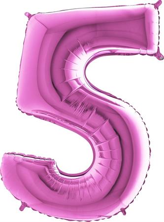 Růžový balónek číslo 5. Balónek je vyrobený z pevné fólie. Po nafouknutí vzduchem vydrží naplněný i několik týdnů, pokud si balónek necháte naplnit héliem vydrží pevně nafouklý a bude létat až 4 dny. K nafouknutí balónku používejte vždy speciální pumpičky