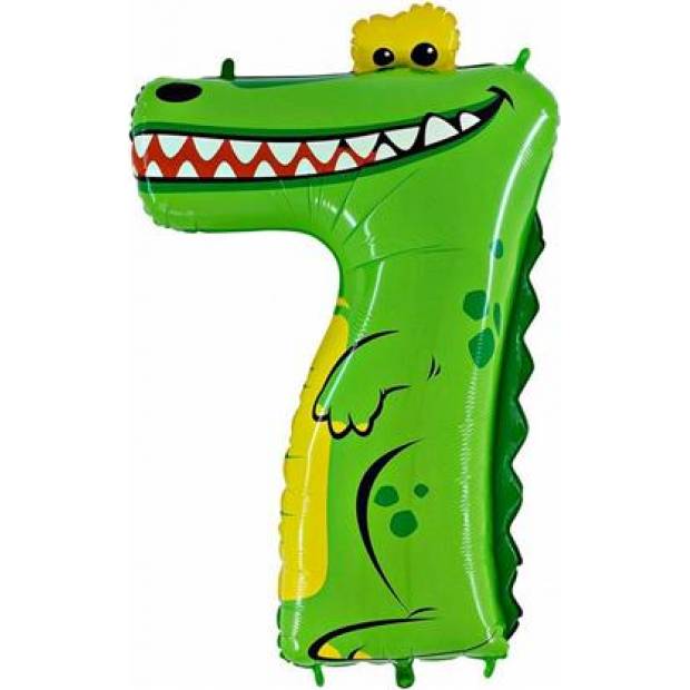 Krokodýl balónek číslo 7. Balónek je vyrobený z pevné fólie. Po nafouknutí vzduchem vydrží naplněný i několik týdnů, pokud si balónek necháte naplnit héliem vydrží pevně nafouklý a bude létat až 4 dny. K nafouknutí balónku používejte vždy speciální pumpičky k tomuto určené, pokud použijete kompresor s velkým tlakem, může balónek prasknout. Nevhodné pro děti do 3 let. Hélium nevdechujte.