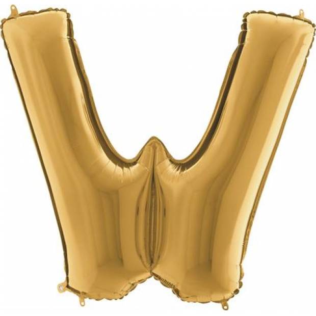 Zlatý balónek písmeno W. Balónek je vyrobený z pevné fólie. Po nafouknutí vzduchem vydrží naplněný i několik týdnů, pokud si balónek necháte naplnit héliem vydrží pevně nafouklý a bude létat až 4 dny. K nafouknutí balónku používejte vždy speciální pumpičky