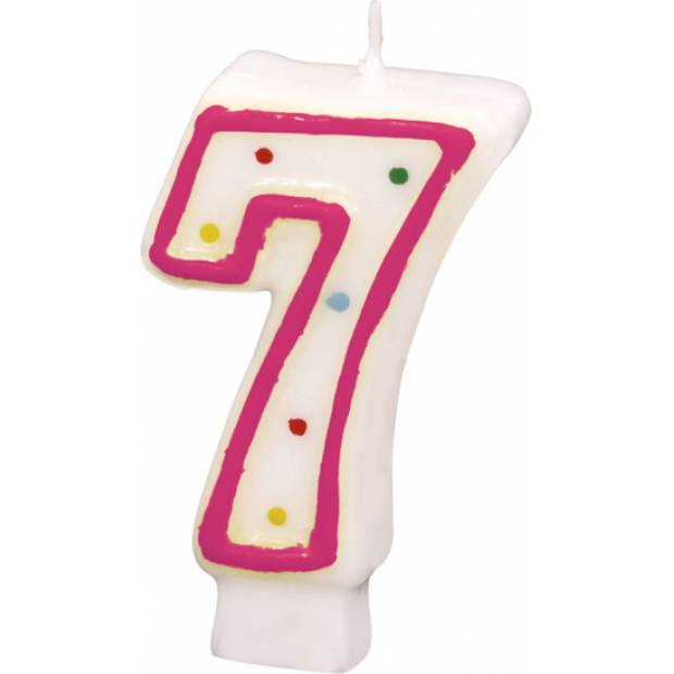 Narozeninová svíčka ve tvaru číslice 7 s puntíky. Výška 7,3 cm.