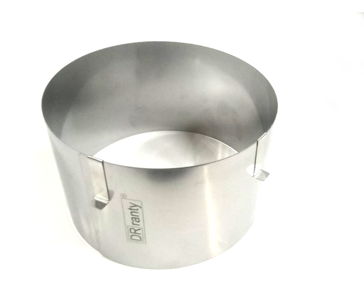 Kruhová nastavitelná forma na dort. Nastavitelný okraj formy o průměru 21 - 26 cm. Forma je 14 cm vysoká. Vyrobeno z odolné a deformační nerezové oceli s certifikátem. Sada obsahuje dvě montážní spony. Cukrářská kruhová forma je alternativou k tradičním plechům na pečení. Naproti tomu je mnohem funkčnější, protože ji lze libovolně upravovat. Použití ráfku mimo jiné usnadňuje žádné dno a dvě spony připevněné k sadě, které slouží k upevnění jejích stran. Postačí položit papír na pečení nebo pergamen na jakýkoli povrch, postavit na něj nastavitelný okraj a poté do něj nanést hmotu. Po vyjmutí z trouby si pečivo udrží svůj dokonalý tvar. Navíc je jednodušší rozdělit jej na porce než sladkosti na klasickém plechu na pečení.