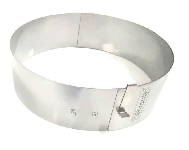 Kruhová nastavitelná forma na dort. Nastavitelný okraj formy o průměru 26 - 34 cm. Má praktickou stupnici (každý 1 cm), díky níž můžete přesně nastavit zvolený průměr těsta. 8 cm vysoká. Vyrobeno z odolné a deformační nerezové oceli s certifikátem. Sada obsahuje dvě montážní spony. Cukrářská kruhová forma je alternativou k tradičním plechům na pečení. Naproti tomu je mnohem funkčnější, protože ji lze libovolně upravovat. Použití ráfku mimo jiné usnadňuje žádné dno a dvě spony připevněné k sadě, které slouží k upevnění jejích stran. Postačí položit papír na pečení nebo pergamen na jakýkoli povrch, postavit na něj nastavitelný okraj a poté do něj nanést hmotu. Po vyjmutí z trouby si pečivo udrží svůj dokonalý tvar. Navíc je jednodušší rozdělit jej na porce než sladkosti na klasickém plechu na pečení.