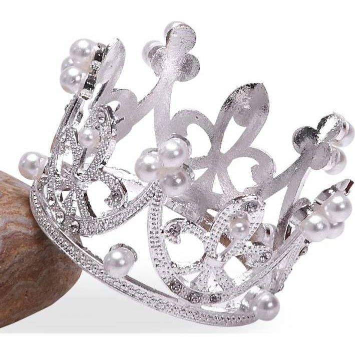 Nejedlá dekorace kovová Koruna stříbrná malá s bílými perlami 2