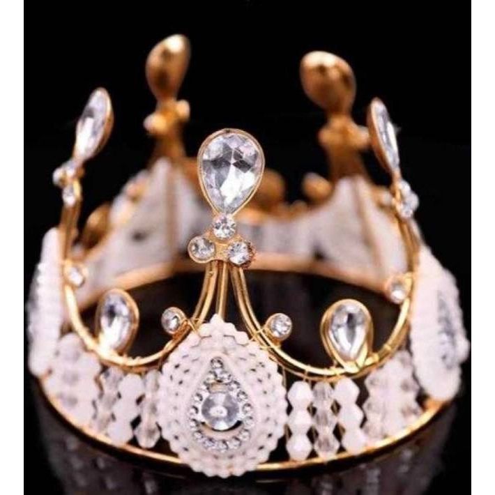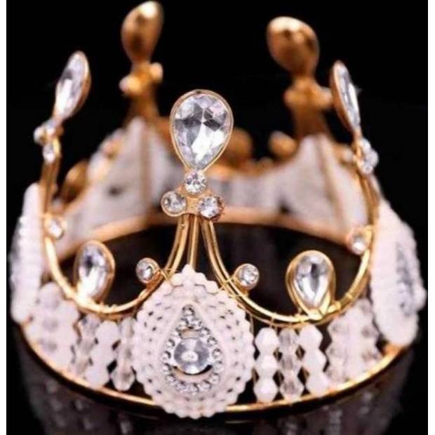 Nejedlá dekorace kovová Koruna zlatá se stříbrnými kameny a plastovými korálky