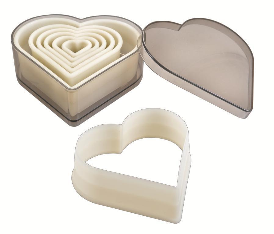 Hladká vykrajovátka, která ztělesňují tvar srdce. Balení, v jehož útrobách naleznete až 7ks praktických vykrajovátek, která mají velice široké upotřebení. Velikosti jednotlivých vykrajovátek jsou od 2cm do 11cm. S jejich snadnou aplikovatelností se váže také jednoduchá omyvatelnost v myčce na nádobí.