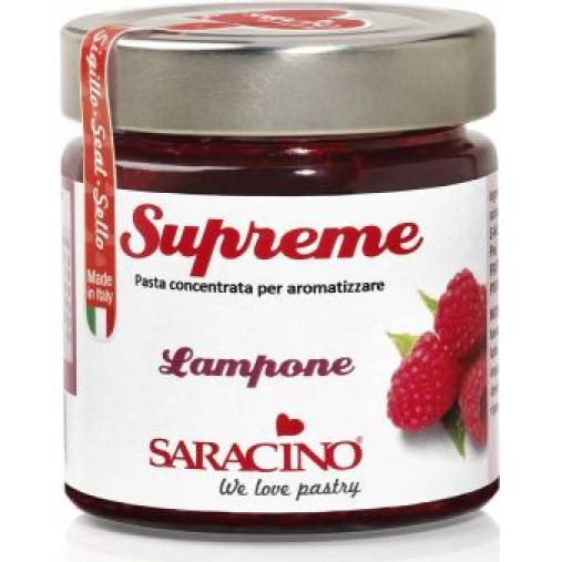 Supreme ochucovací pasta je koncentrovaná chuť v krému pro ochucení dortů, pěn, krémů a zmrzlin. Jednou z nejčastějších výzev při vytváření různých příchutí, zejména těch na bázi citrusů, je tepelná stabilita. Příchutě Saracino jsou navrženy tak, aby poskytovaly konzistentní chuť po celou dobu pečení. Baleno ve 200 gramové skleněné dóze s dokonalým uzávěrem. Specialisty a nadšence z oboru potěší vysoká kvalita, která umožňuje připravovat krémy, pěny, míchat s dorty, čokoládou, polévat zmrzliny a dorty, ochucovat makronky, muffiny a piškoty. Smíchaný s těstem dodává piškotu chuť a používá se k namáčení piškotů. Vhodná na krémy, polevy, pudinky a čokoládu. Můžete přidat nebo přelít zmrzlinu, jogurt, dorty a želé. Ideální pro dorty, ganache, makronky, muffiny, zmrzlinu a jogurt. Může být použita v čisté formě jako džem. Použití: Před použitím je nutné promíchat Na zmrzlinu, mražený jogurt, pěnu, panna cottu: smíchejte 100 g pasty s 1 litrem smetany nebo mléka. Na koláče: smíchejte 80 – 120 g pasty s 1 kg směsi. Koncentrace produktu umožňuje získat optimální výsledek při použití 80 - 100 gramů aromatické hmoty na 1 kg těsta nebo krému. Lze jej použít jako ovocný posilovač v dávkách 35 - 50 g na litr dužiny. Při spojování s krémy, polevou a čokoládou se doporučuje směs dobře promíchat.
