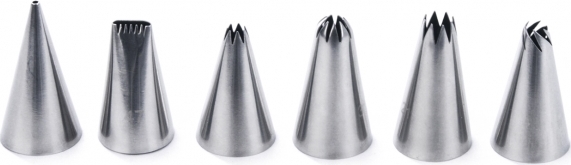Cukrářské zdobicí neboli trezírovací špičky z pevné nerezové oceli jsou určené do klasických bavlněných, plastových i silikonových sáčků nebo do jednorázových igelitových.