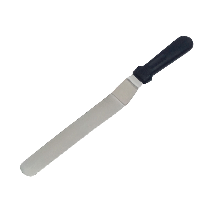 Zahnutá paletka pro snadné zdobení dortů krémem či polevou. Délka 25,5 cm.