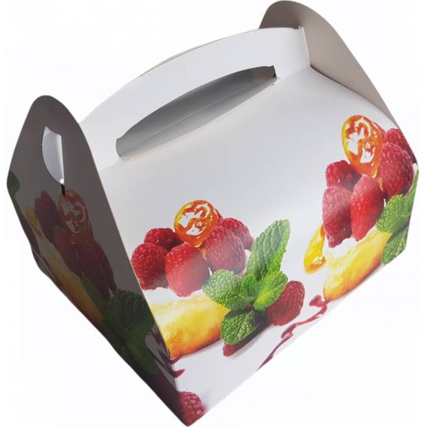 Papírová taštička Palermo je vyrobena z pevné lepenky, ozdobená potiskem. Poslouží k přenášení dezertů, zákusků, chlebíčků, apod. Její rozměry jsou 20 x 18 cm.