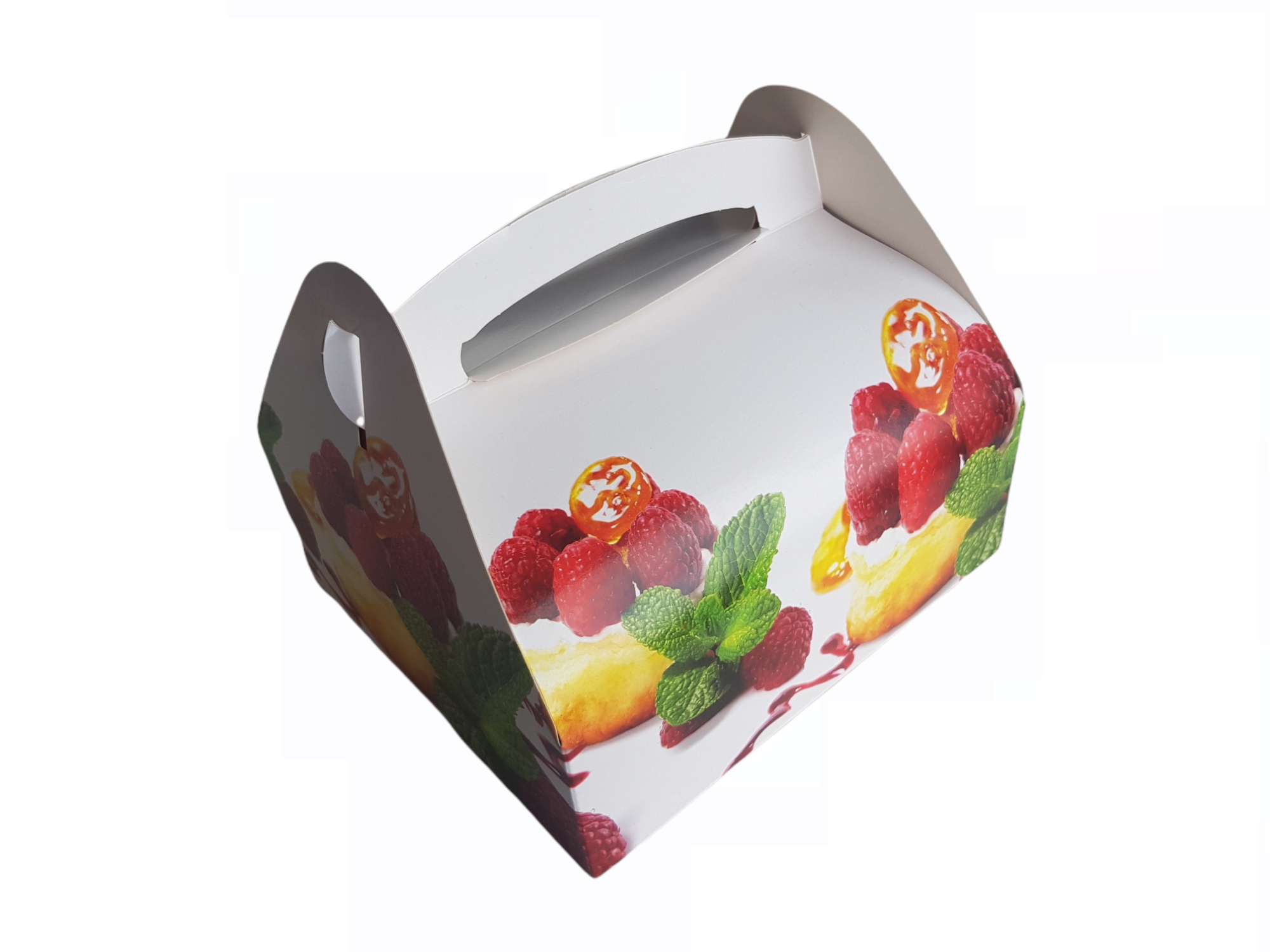 Papírová taštička Roma poslouží k nošení jednohubek, chlebíčků i zákusků bezpečně. Rozměry 18 x 16 cm
