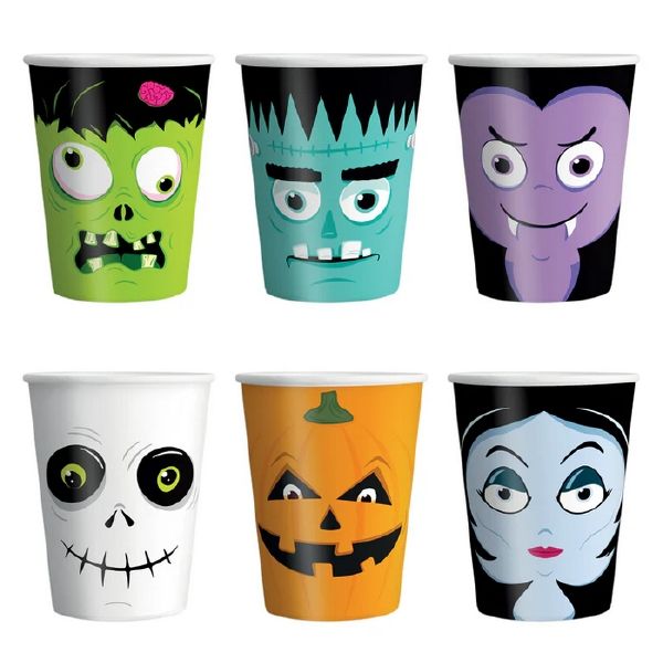 Papírové kelímky halloween monster. Objem 220 ml, v balení 6 ks.