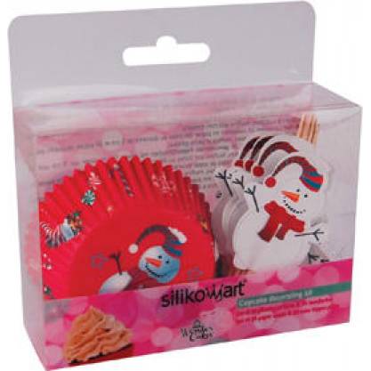 Košíčky na pečení i servírování muffinů se vzorem sněhuláčků a zapichovátka na dozdobení (24ks).