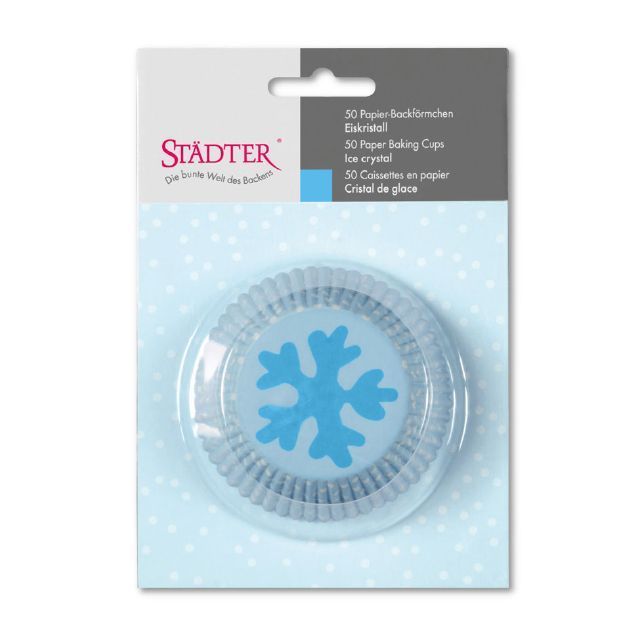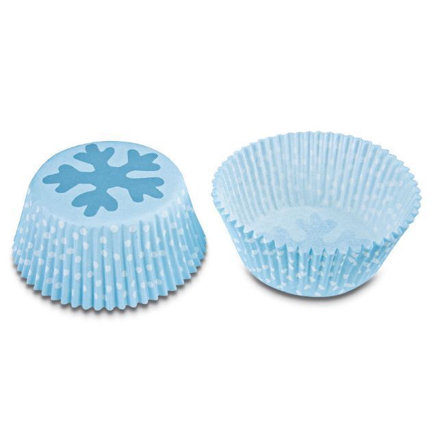 "Papírové pečicí formičky - košíčky, vzor sněhová vločka. Papírové formičky jsou vhodné na pečení muffinů a cupcakes. Košíčky vždy naplňte těstem jen do 2/3, při pečení těsto zvětší svůj objem.