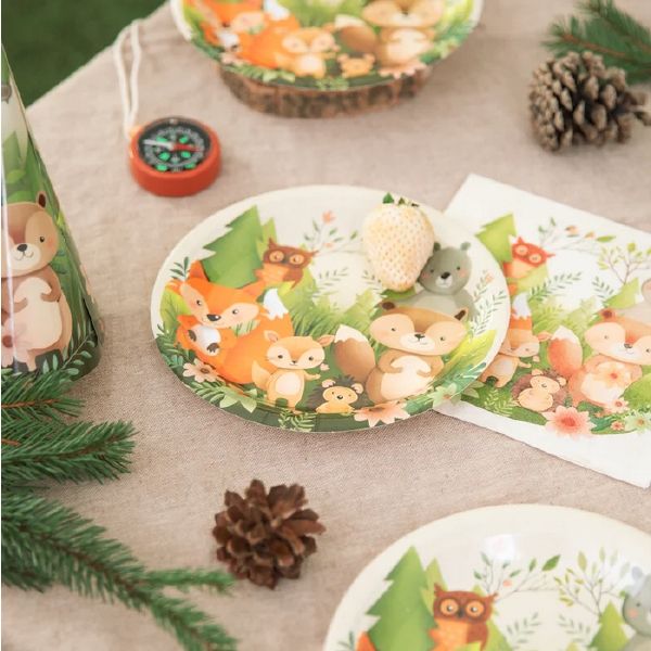 Na narozeninové oslavě nebo dětské oslavě nabídněte dětem lahodné občerstvení na těchto roztomilých talířích se zvířátkovým vzorem. Balení obsahuje 6 papírových talířků se zvířátkovými vzory (medvídek, ježek, sova, liška, zajíček, veverka). Jejich průměr: 18 cm. Tyto papírové talíře jsou nejen atraktivní, ale také praktické. Usnadní vám to práci, protože se nemusíte zabývat nádobím.