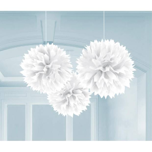 Party dekorace v podobě velkých bílých koulí. V balení 3 ks.