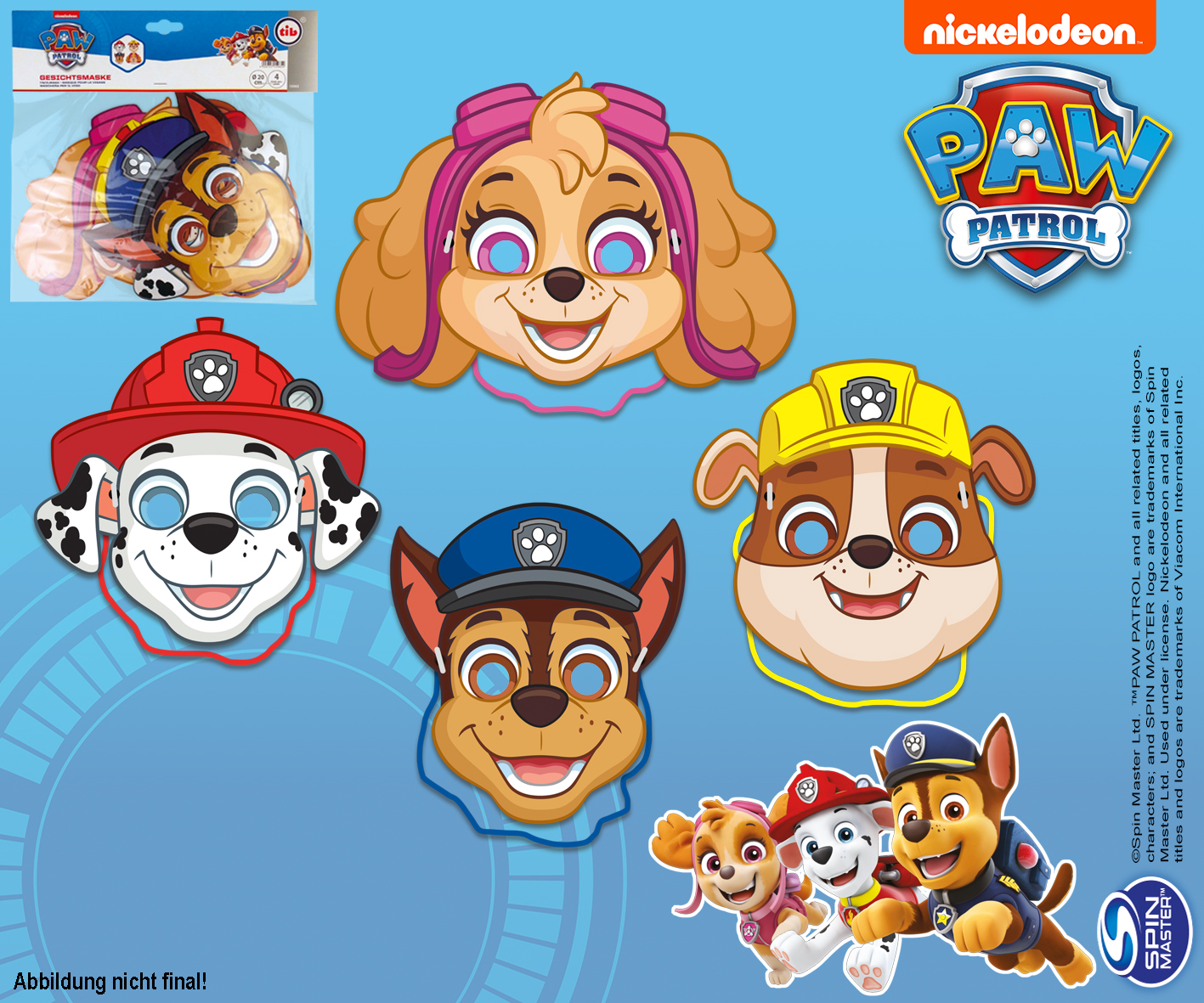 Party papírové masky Tlapková patrola. V balení 4 ks.