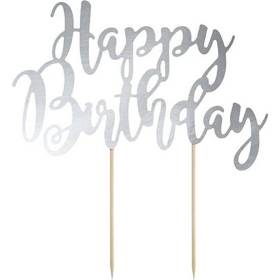 PartyDeco zapichovací dekorace na dort stříbrná Happy Birthday KPT11-018M dortis