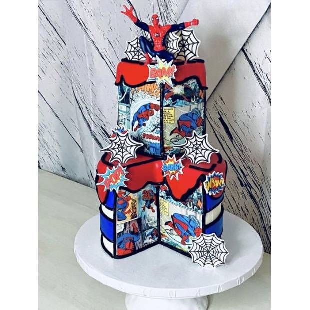 Dortová fontána motiv Spiderman.