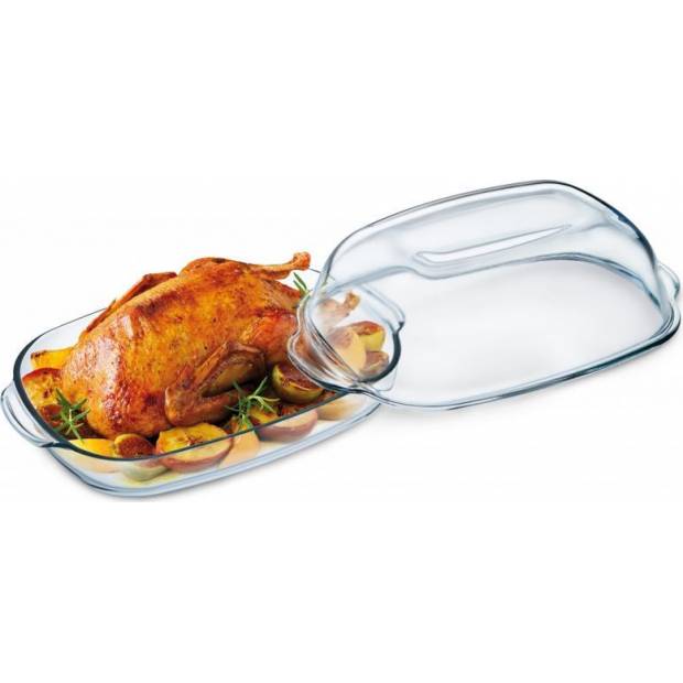 Obdélníkový pekáč z odolného skla vhodný do každého typu pečící trouby.