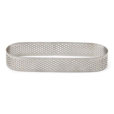 Perforovaná forma oválného tvaru na tartaletky. Rozměry 13 x 4 cm.
