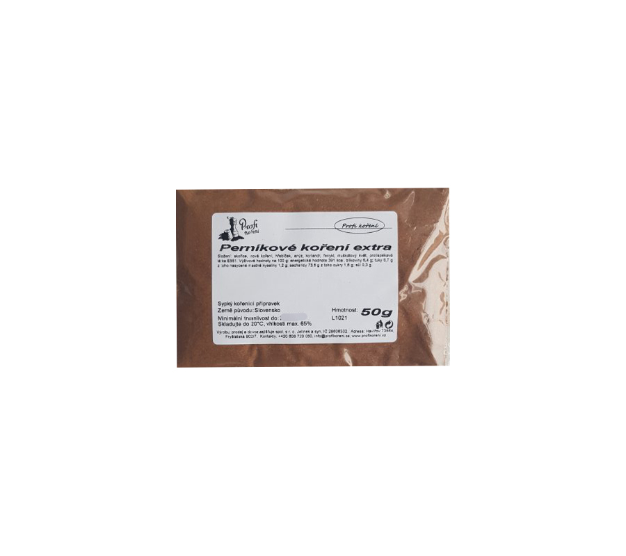 Perníkové koření extra je sypká směs oříškové barvy s velmi výraznou chutí a vůní. Je vhodná na pečení do perníčků, vánoček, ale i do svařeného vína.