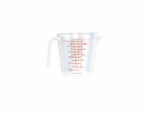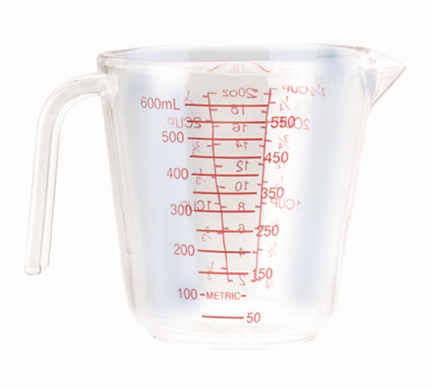Odměrka z kvalitního plastu s několika různými možnostmi měření. Může se mýt v myčce nádobí.